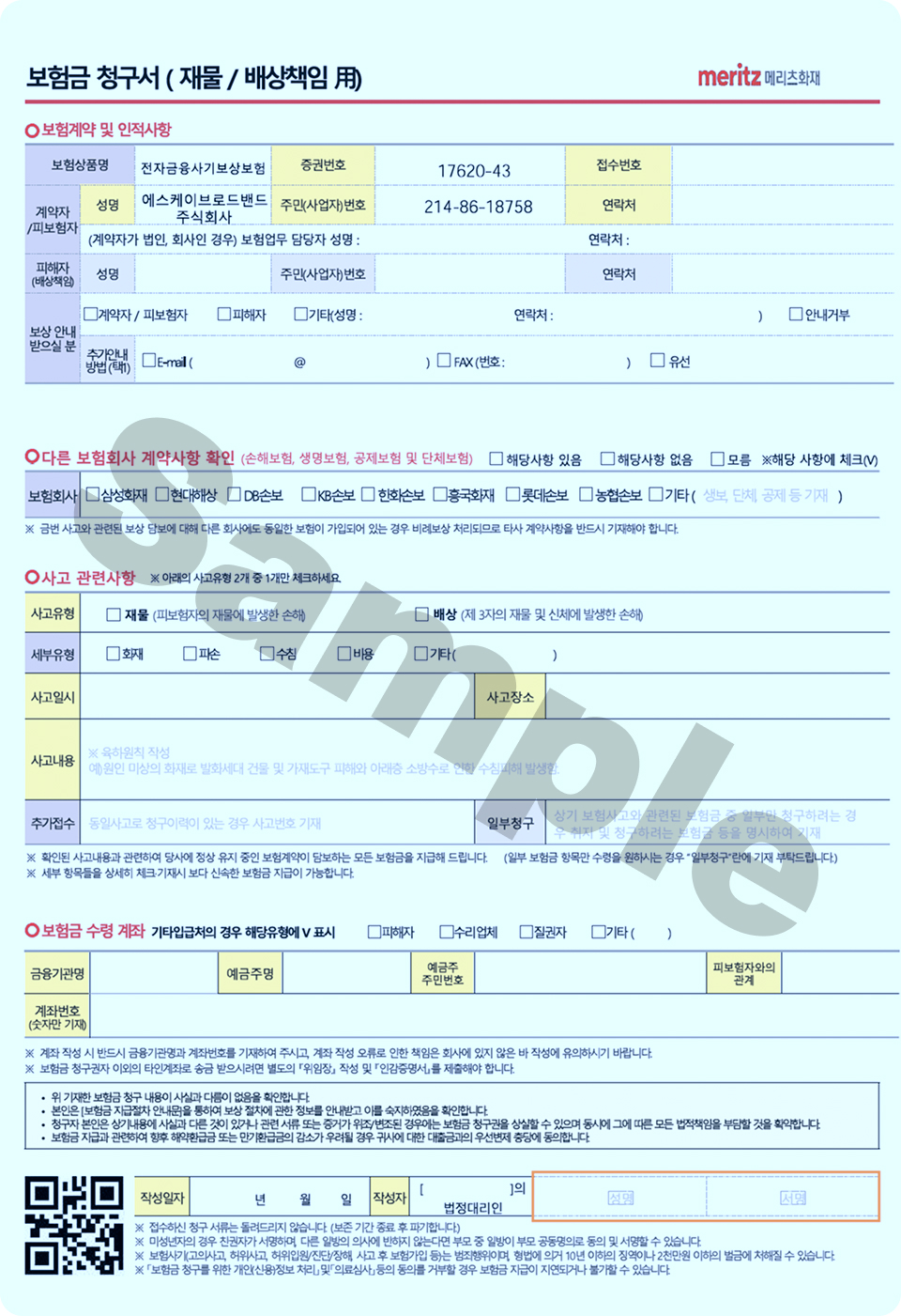 보험금 청구서 양식을 다운로드 후 작성해 주세요.
